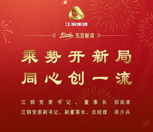 所当乘者势也,不可失者时也。2026年是国家“十五五”规划的开局之年,也是江铜迈向“2030年基本建成具有全球核心竞争力世界一流企业”的启航之年。善于“用未来思考今天”,才能更加坚定对未来发展的信心,共同创造更加美好的未来。我们要深入贯彻落实党的二十届四中全会精神和中央经济工作会议精神,聚焦“走在前、勇争先、善作为”的目标要求,坚持“主业聚焦、创新突破、资源增储、高质发展、迈向一流”的战略方针,以志存高远、志在必得的信念和韧劲,将战略部署转化为扎实行动,着力在资源获取、科技创新、管理革新、人才强企等方面实现新突破,深挖发展潜能,全力提质增效,乘势开新局,同心创一流,为谱写中国式现代化江西篇章作出江铜新的更大贡献,交出无愧于党和国家殷切重托、无愧于江铜人时代使命的精彩答卷!